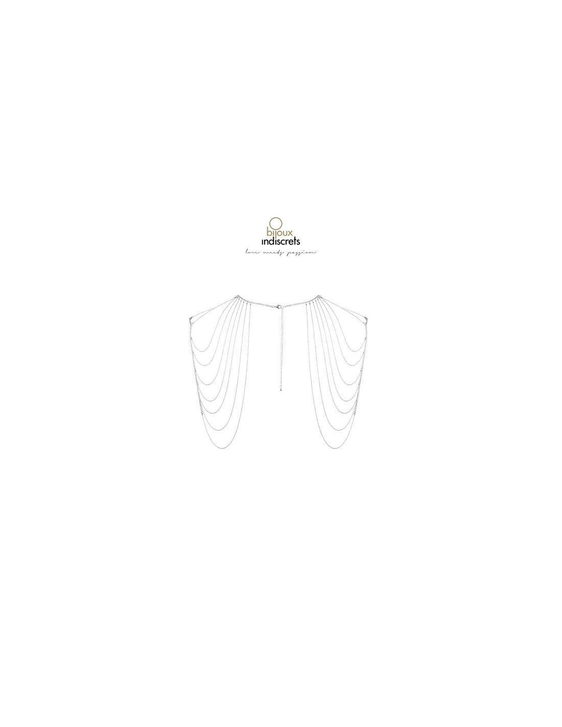Avec le Bijou d'épaules et de dos ajustable en chainettes métalliques de la collection "Magnifique" de Bijoux Indiscrets, sublimez aussi bien vos tenues de soirée que votre lingerie sexy ou votre corps nu.