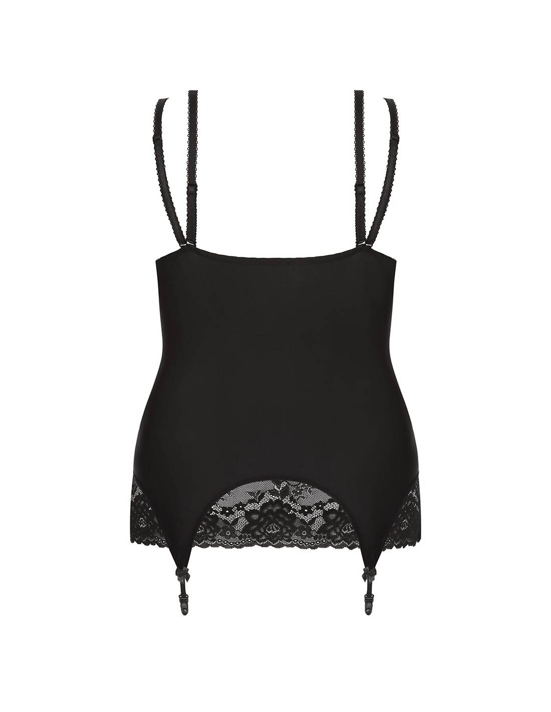 La guêpière Kiri signée Anaïs Lingerie est une superbe lingerie fabriquée en tissu doux et élastique au rendu noir mat et en dentelle au motif fleuri.